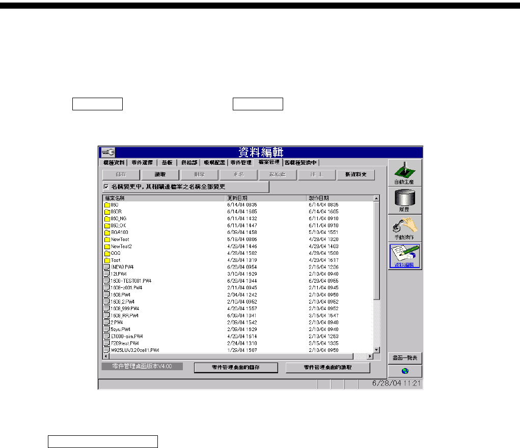 ·在零件管理表储存中,显示 「正在儲存零件管理桌面。」