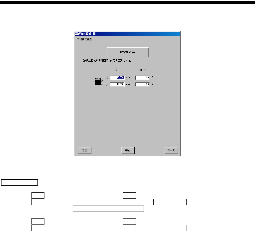 零件认识资料制作篇 第 1 章 操作 SI-F130AI /SI-F209 1-31 3.4.3 本体设定画面 (异型零件以外) 图 3.4.3 本體設定 ( 本体设定 ) 画面 ( 异型零件以外 ) 開始本體設定 ( ) X 尺寸 ( ) X 尺寸 ( ) …