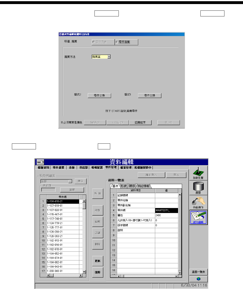 零件认识资料制作篇 第 2 章 顺序 2-12 SI-F130AI/ SI-F209 零件廢棄 ( ) 認識結束 ( ) 图 1.3-17 零件廢棄 ( 零件废弃 ) 画面 零件管理 ( ) 更新 ( ) 图 1.3-18 …