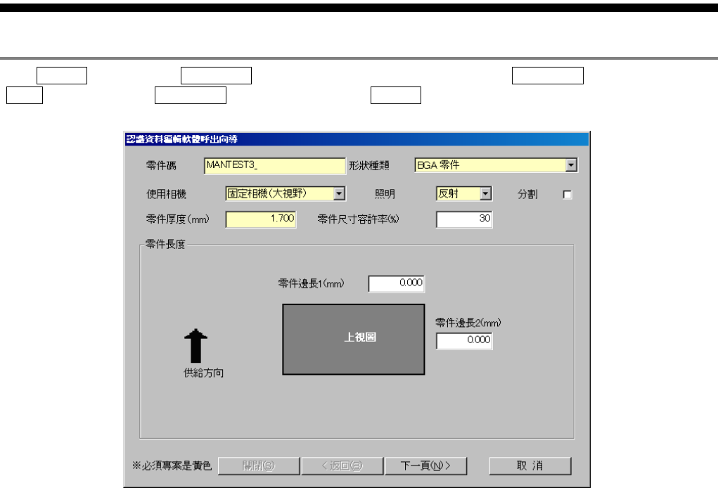零件碼 ( ) 形狀種類 ( ) BGA 使用相機 ( )