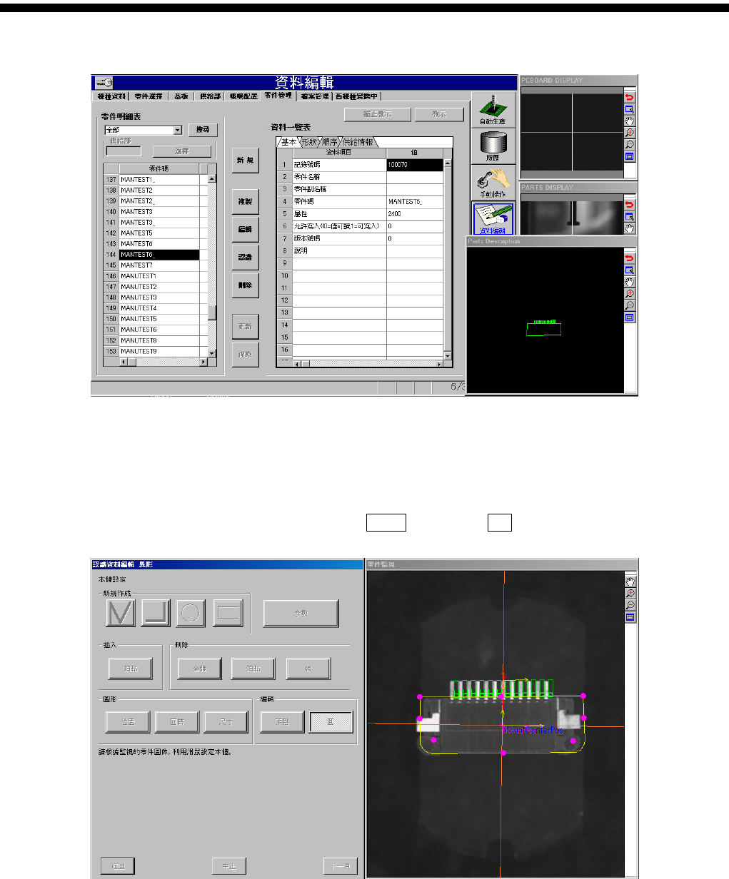 零件认识资料制作篇 第 2 章 顺序 SI-F130AI /SI-F209 2-51 零件廢棄 ( ) 認識結束 ( ) 图 1.6-23 零件廢棄 ( 零件废弃 ) 画面 更新 ( ) 图 1.6-24 零件管理 - 更新 ( 零件…