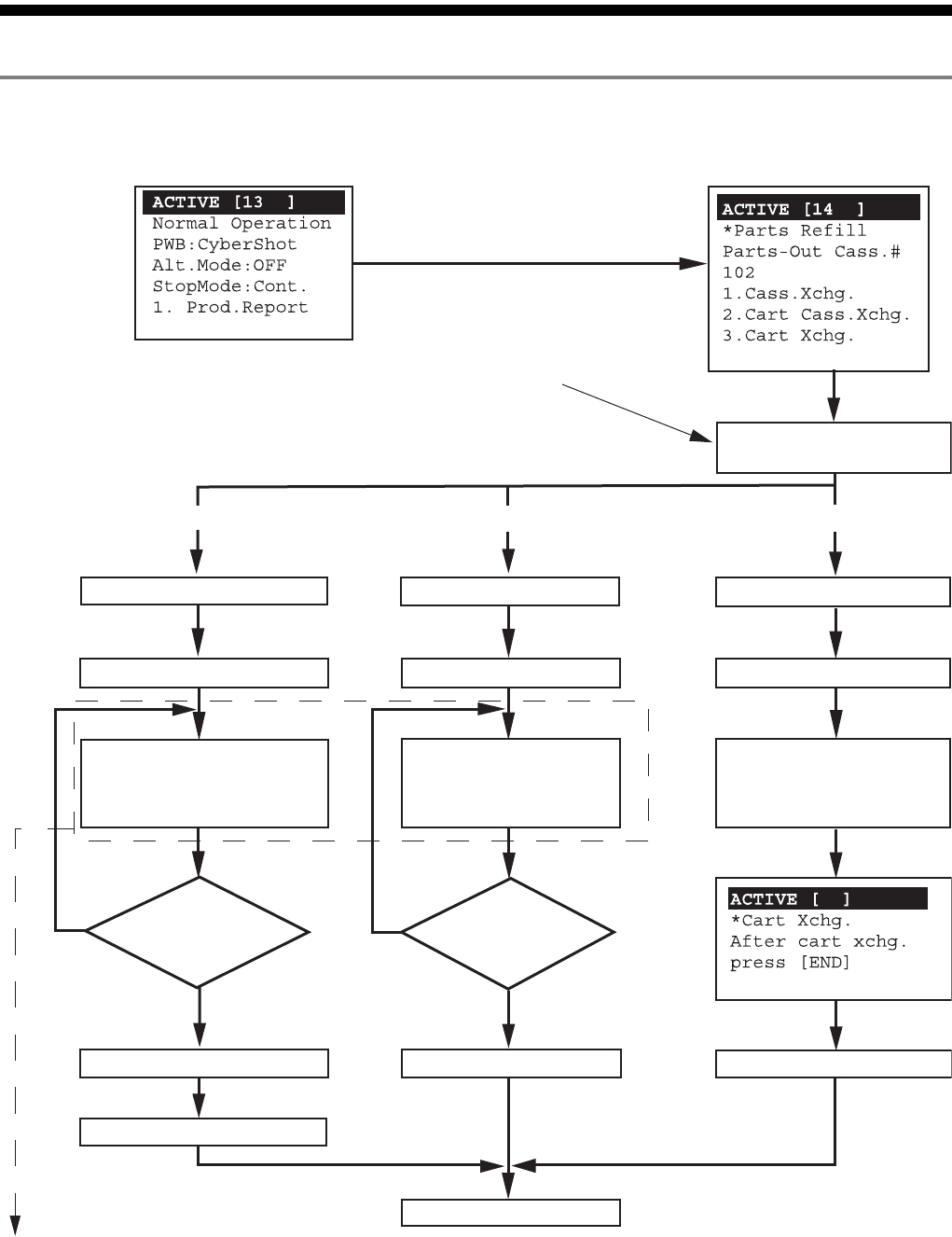 手动控制器篇 5. 零件交换作业 SI-F130AI 5-3 5.2 零件交换概略流向和用条 形码器读取号码格式 5.2.1 零件交换概略流向 图 5-1 正常运转中 不存在条形码确认为 「無」 ( 无 ) 的条件 1. 供料器交 换 2. 台车供料器交换 3. 台车整体交 换 参照条形码确认 形式 A 、 B 、 C 零件交换屏幕 是 是 否否 解除锁定安全门 安全门开启 全部交换完成 了吗? 交…