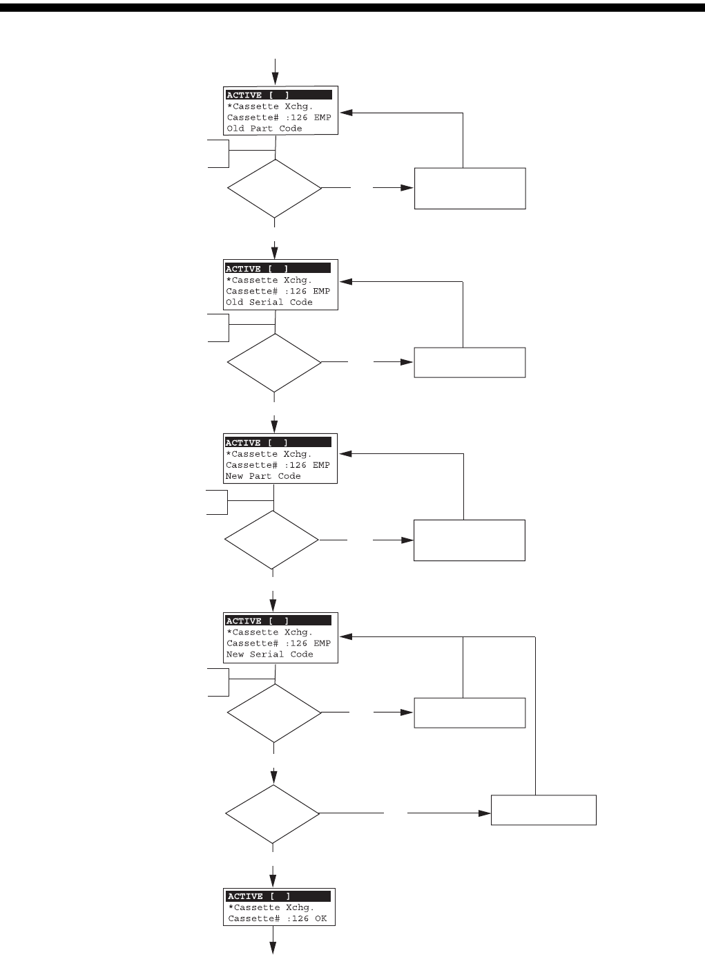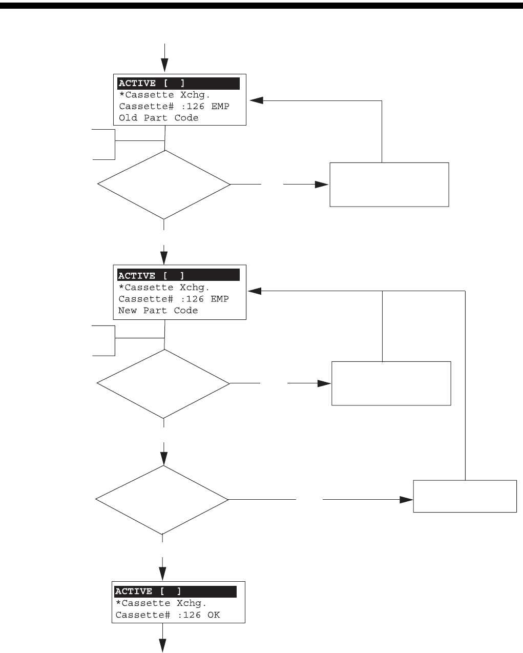 手动控制器篇 5. 零件交换作业 5-6 SI-F130AI 条形码确认步骤 Ty p e C 图 5-4 否 是 否 否 否 否 是 是 是 是 读取空零件的条形码 读取空零件的序列码 读取新零件条形码 读取新零件的序列码 是正确的零 件 ID 吗? 零件 ID 不一致。 请准备正确的零件 。 是正确的序 列码吗? 不是序列码。 是正确的零件 ID 吗? 零件 ID 不一致。 请准备正确的零件。 是正确的序 列码吗? 不是序列码。 序…