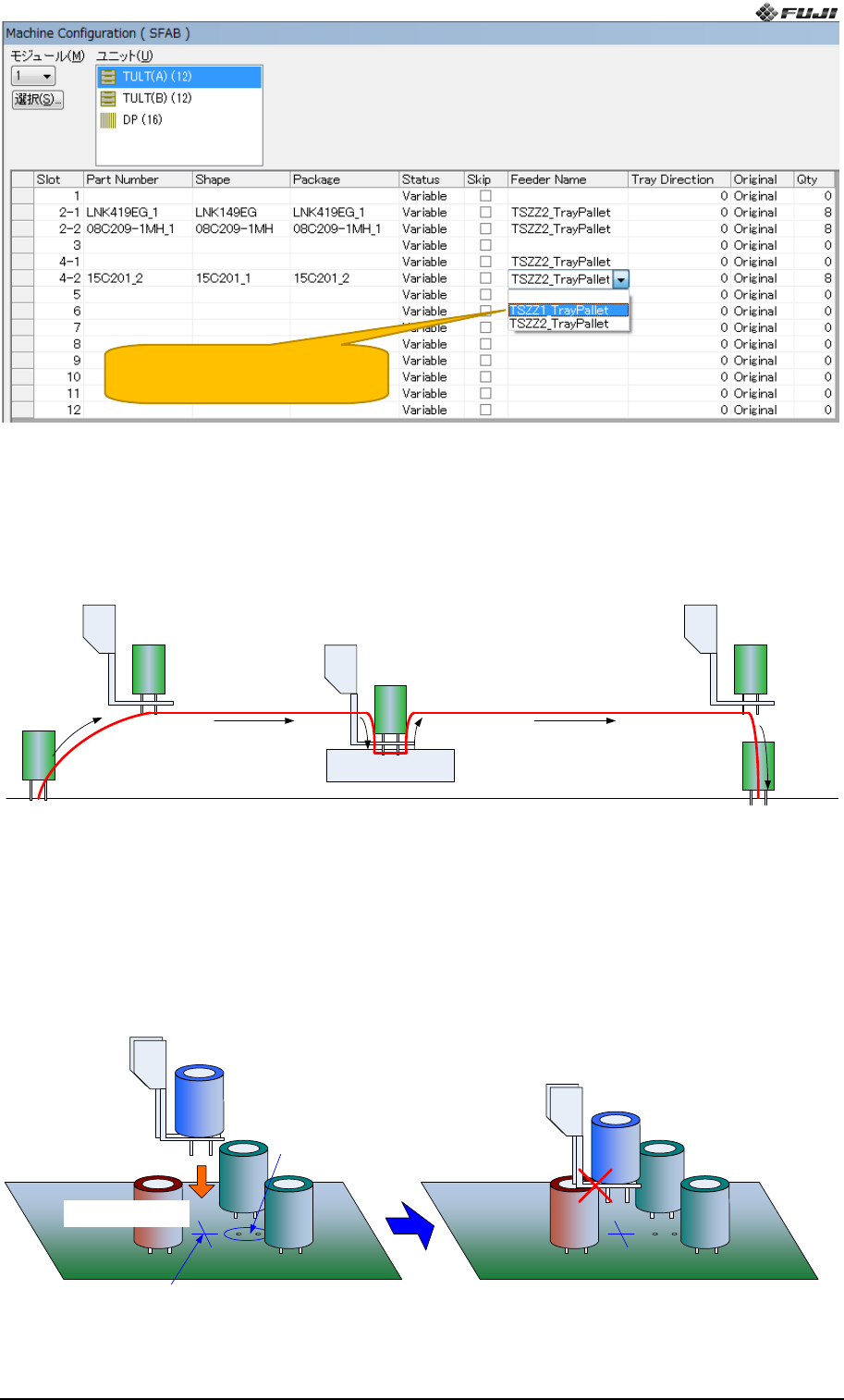 - 14 - sFAB-COM-OPM-0014 5.5 搬运动作 SFAB 在进行元件吸取、影像取 入以及元件贴装时,在 XY 轴到达目的位置之前 就实 行 Z 轴下降,由此来缩短动作时 间(弧形动作)。并且因为影像取入前后和元 件贴装 时的弧形量不大,不会与先行贴 装元件发生干涉。 5.6 邻接贴装的注意 进行邻接贴装时,贴装之前会在 贴装准备位置下降元件。因为贴装准备位置并 不是 根据 CAD 数据所自动创建的数据 ,而是通过手动…