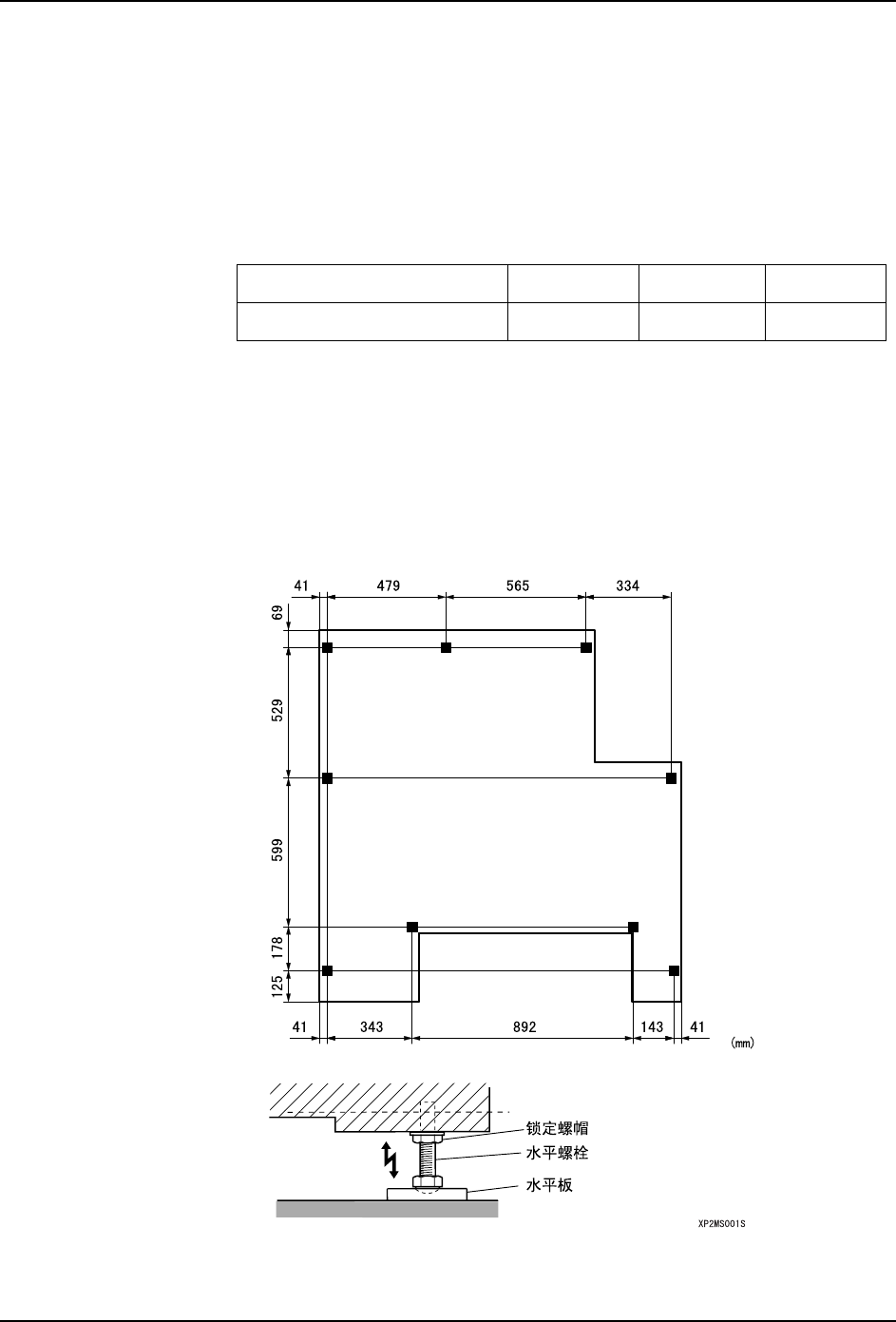 MEC-XP243-3.0S 7. 安装 XP-243E 机械手册 109 7. 安装 7.1 安置 7.1.1 要点 把水平板放在指定的位置,以确 保主机的水平。 此外,需要根据电路板的搬运高 度,选用适合的水平板。 7.1.2 方法 1. 参考下图布置水平板。 2. 把 2 个水平仪装在主机的机座上。( 横向和纵向 ) 3. 转动各个水平螺栓调整高 度。 4. 确认电路板的搬运高度、 机器的水平度是否正确之后,请把各 个锁定螺帽拧紧…