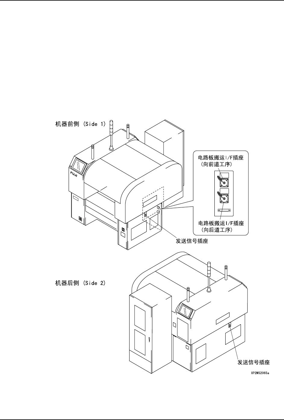为了传输机器间电路板的交接信号,在机器之间要用电路板搬运 I/F 信号连接器和传送信