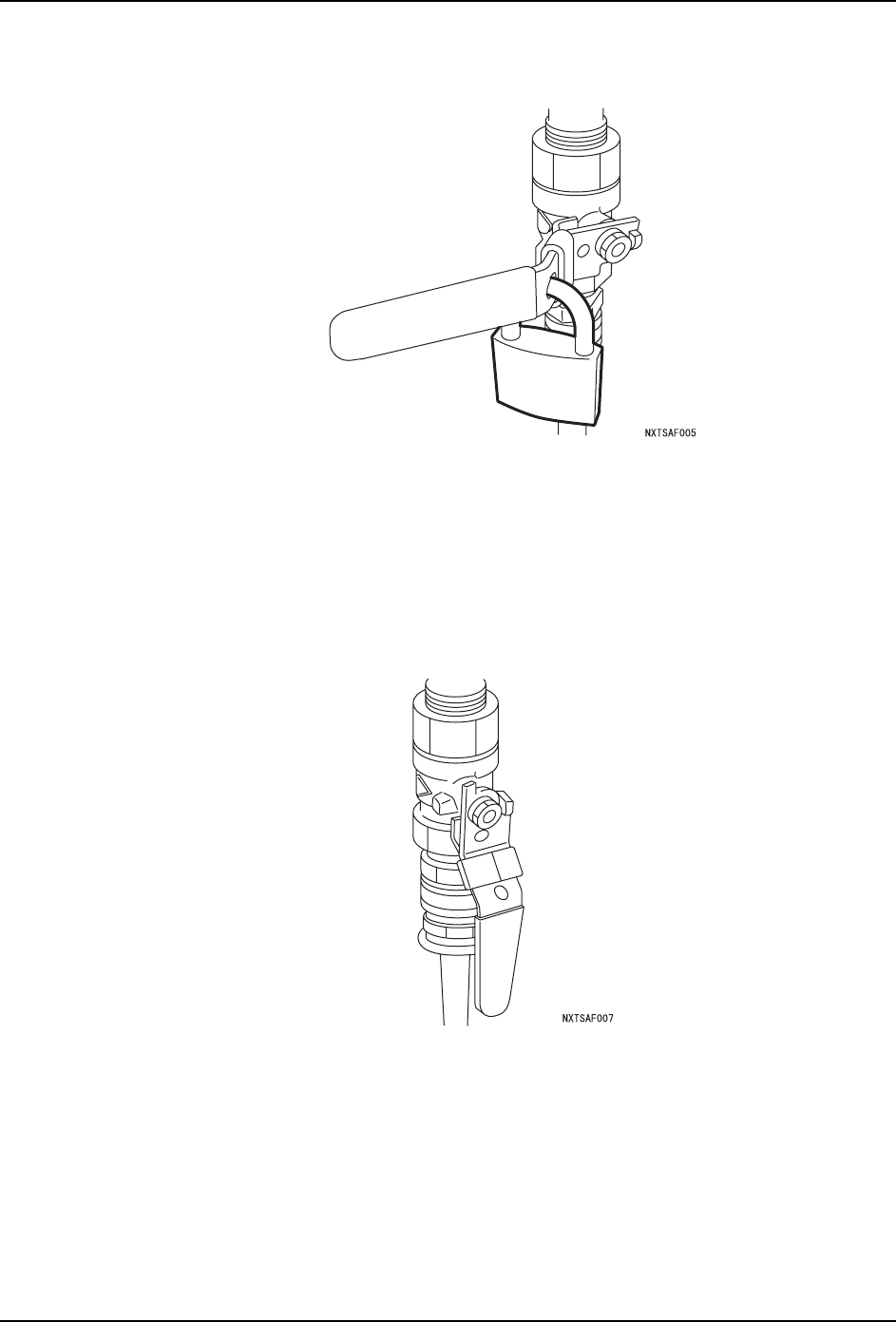 4. 同样将空气阀手柄旋转至 OFF 位置,锁上荷包锁。