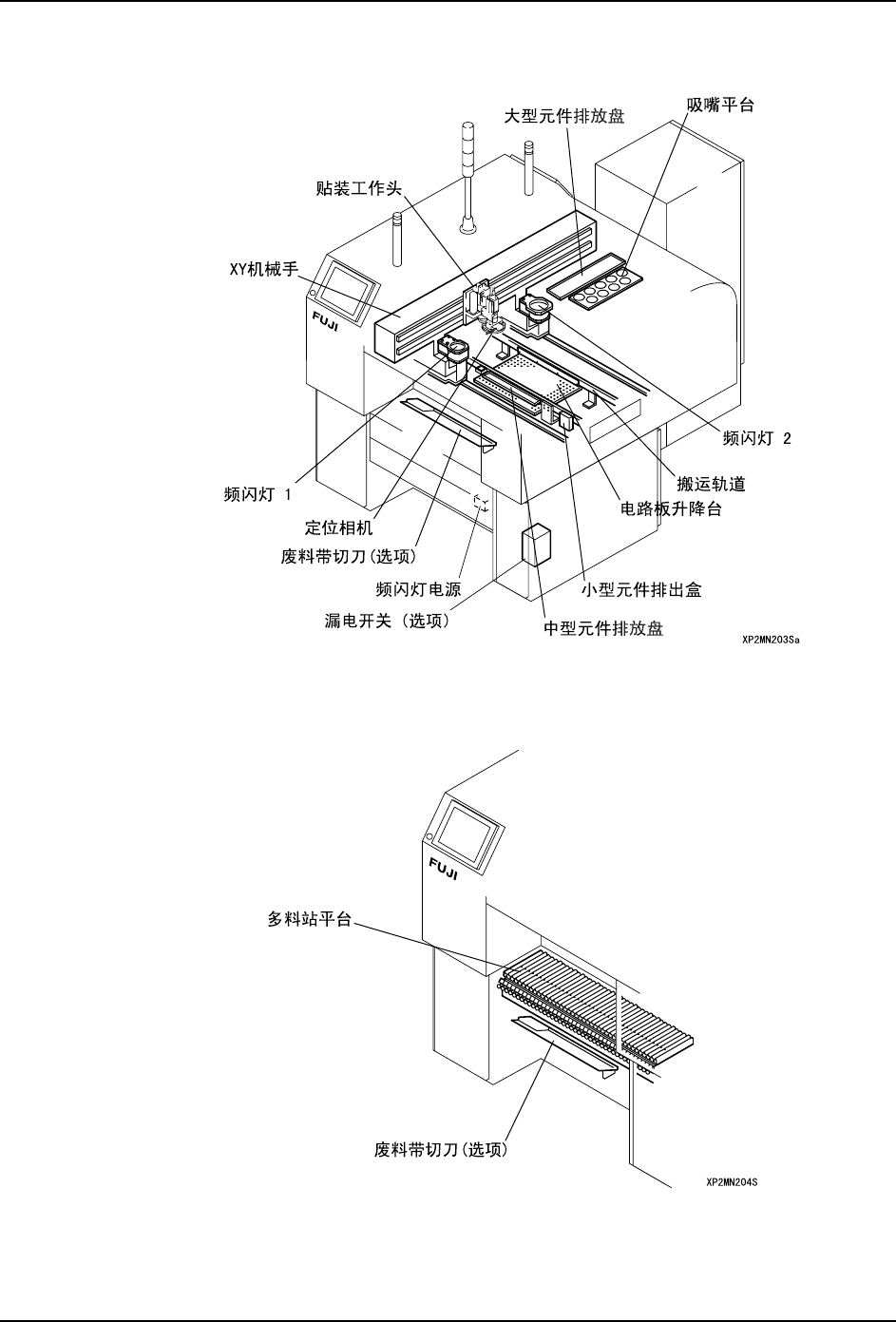 2. 机器主体 MEC-XP243-3.0S 18 XP-243E 机械手册 机器内部 <SIDE 1 固定料站平台装载机的时候 >