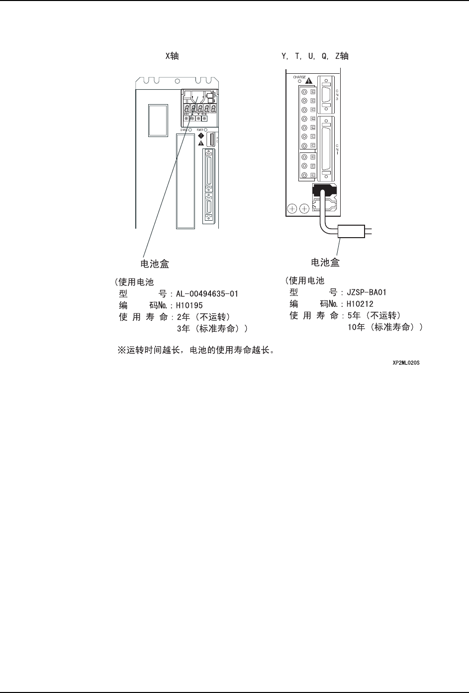 4. 维修保养 MEC-XP243-3.0S 54 XP-243E 机械手册 4.3.7 伺服放大器电池的更换 要点 XP 系列机器是使用绝对值编码器马达可以将 绝对值编码器 ( 位置信息 ) 一直记忆在伺服放 大器中,如果这个绝对值编码器 的数据消失时,有必要进行绝对值 编码器的安装和固有值 的重新测定。绝对值编码器在电 源处于 OFF 时会消失,所以伺服放大器作为在控制电源 OFF 时的备份而内存有电池。 机器的操作画面 上显示出 …