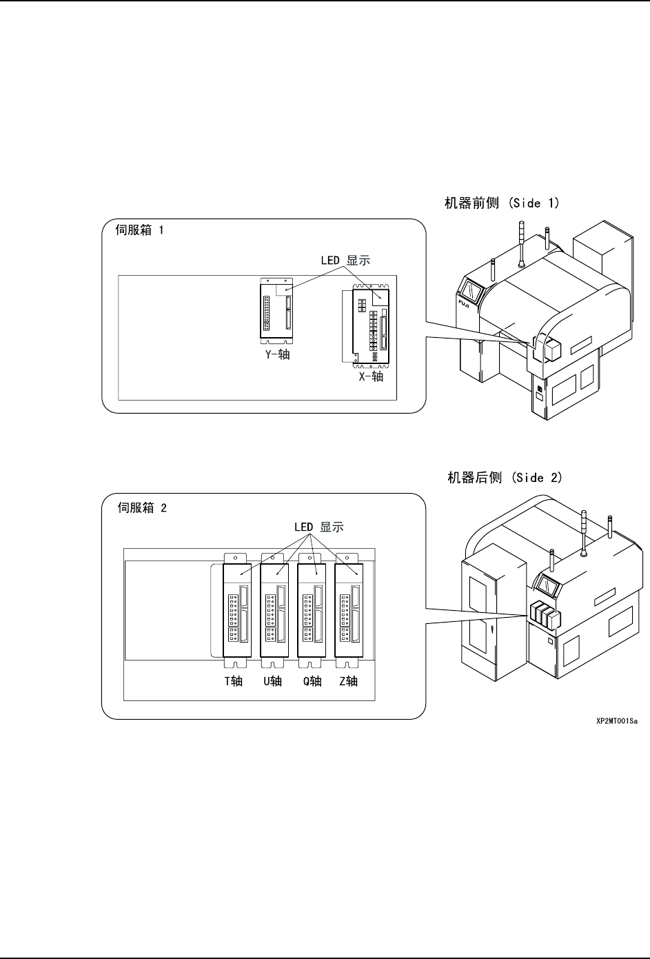 1. 使用内藏于伺服放大器里的操作面板进行参数的确认。关于 Y,T,U,θ和 Z 轴,也可