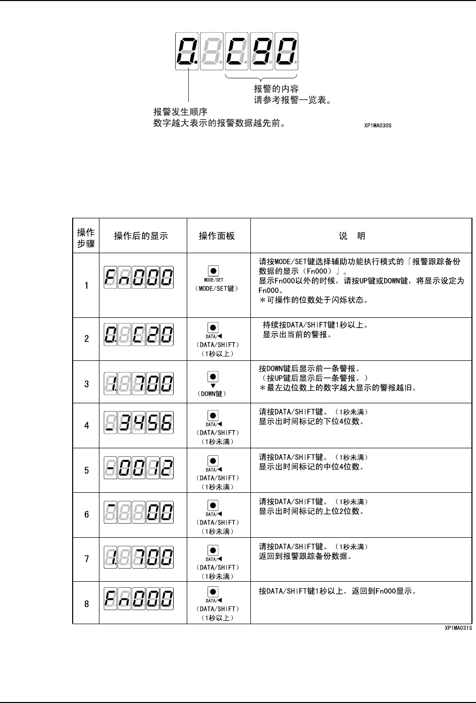 5. 调整 MEC-XP243-3.0S 70 XP-243E 机械手册 用户参数确认模式 (Pn □□□) 1. 利用本功能,能确认用户 参数。 2. 操作面板的显示位数为 5 位数。参数为 6 位数以上时如下显示。
