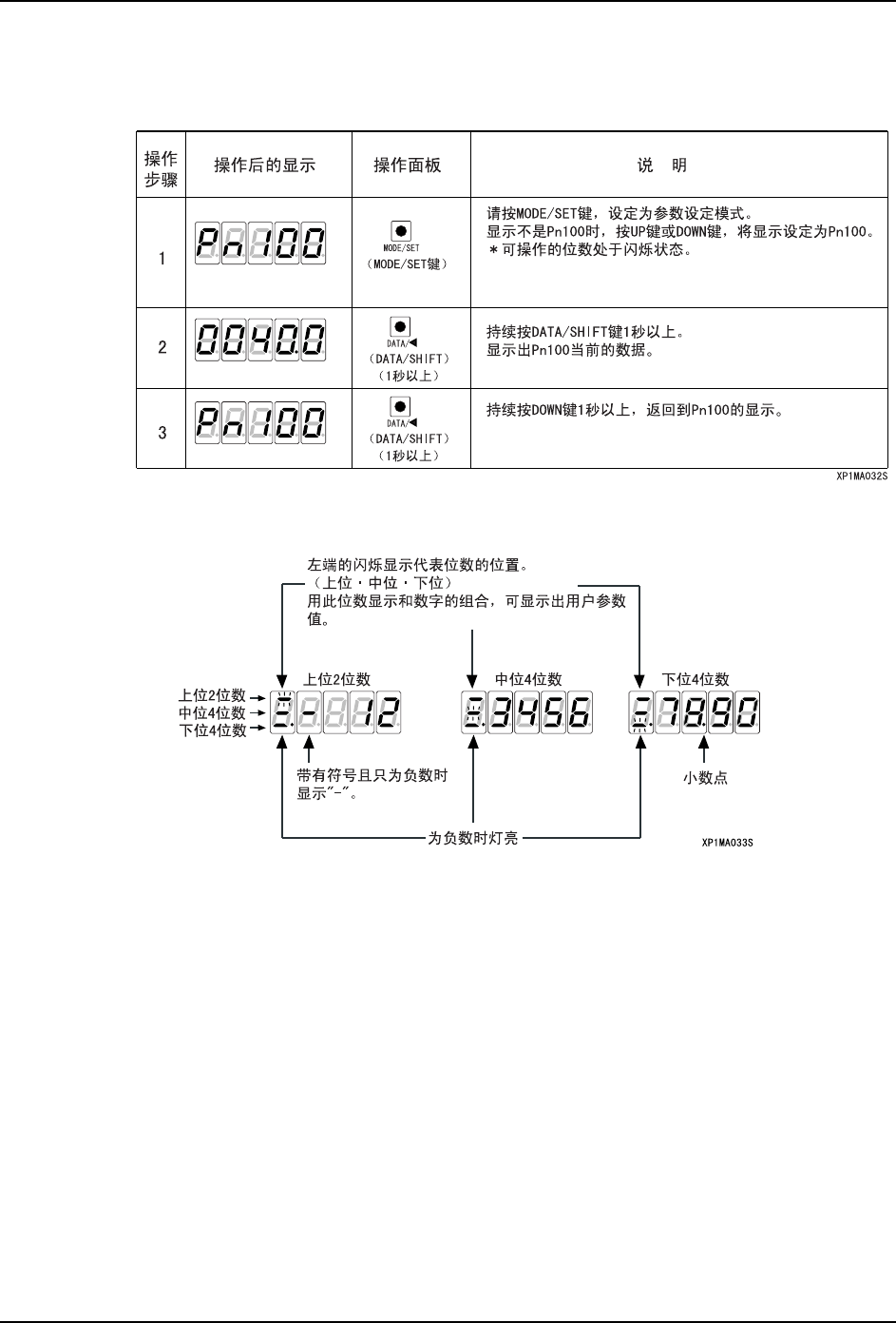 3. 以参数 「Pn20E = 1234567890」为例说明显示的方法。