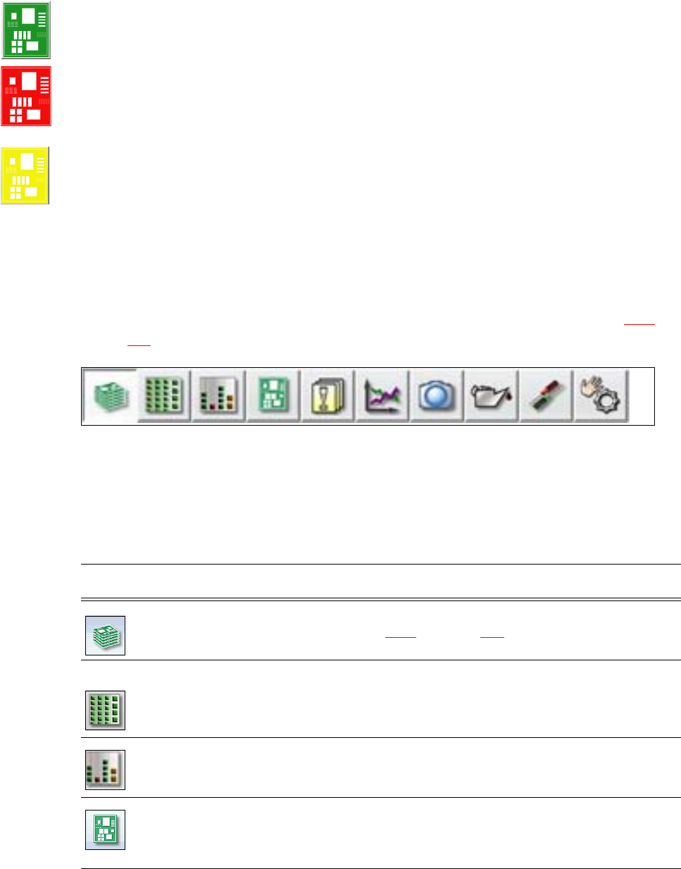 如果印制板位于输出传送导轨中,而且需要操作员检查印制板的状态,则 PCB 图标将显示为黄