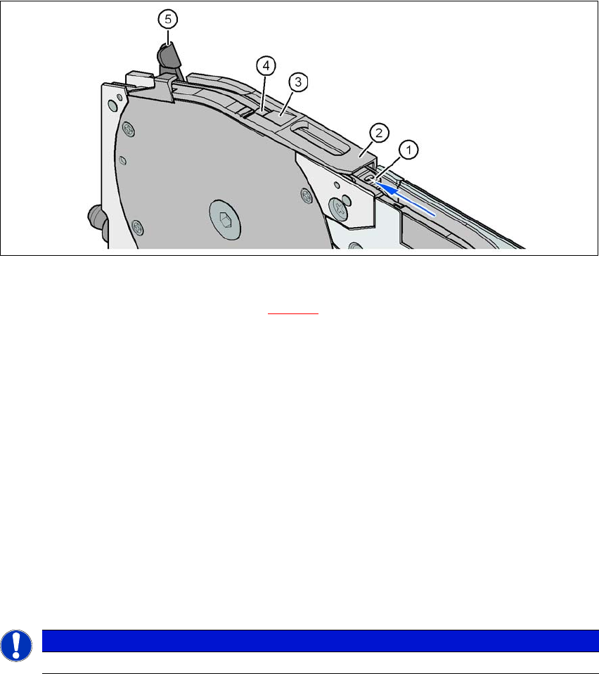 Check the latch (item 3) of the feeder module as you do so. This must slide easily into the