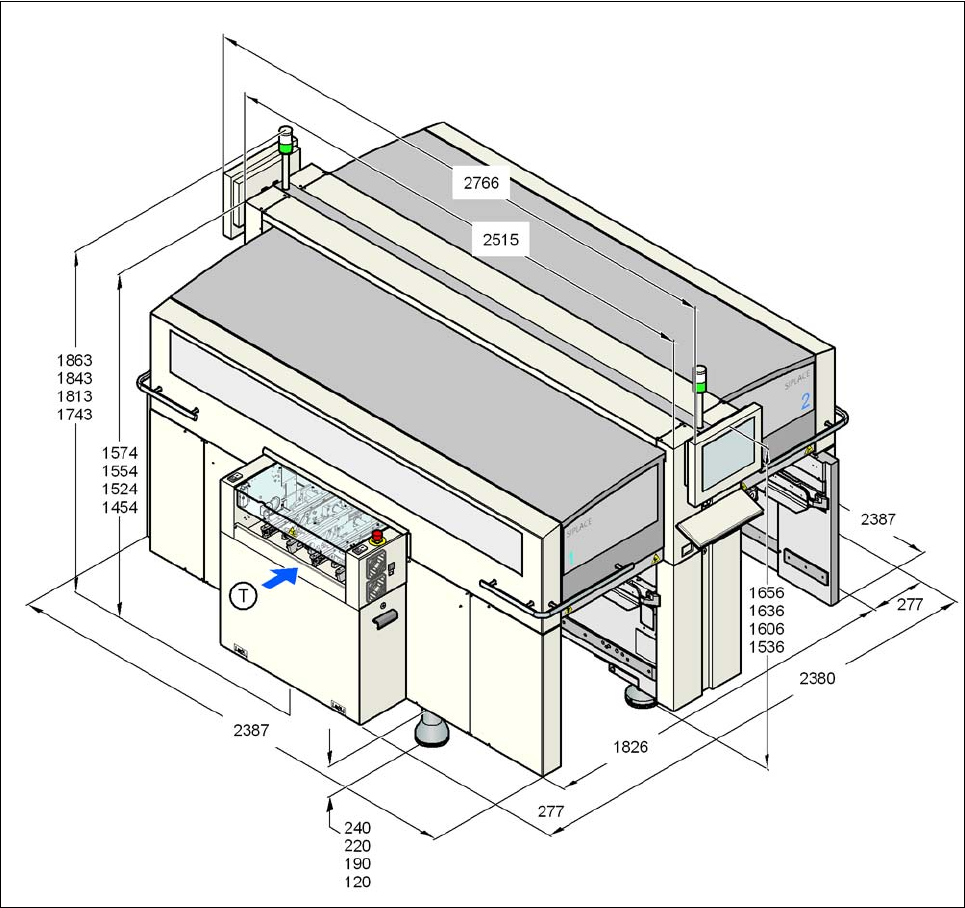 User Manual SIPLACE X-Series 3 Technical data for the machine From software version SR.605.xx 07/2008 EN Edition 3.3 Dimensions and weight 109 3.3 Dimensions and weight 3.3.1 T echnical data - dimensions and weight Lengt…