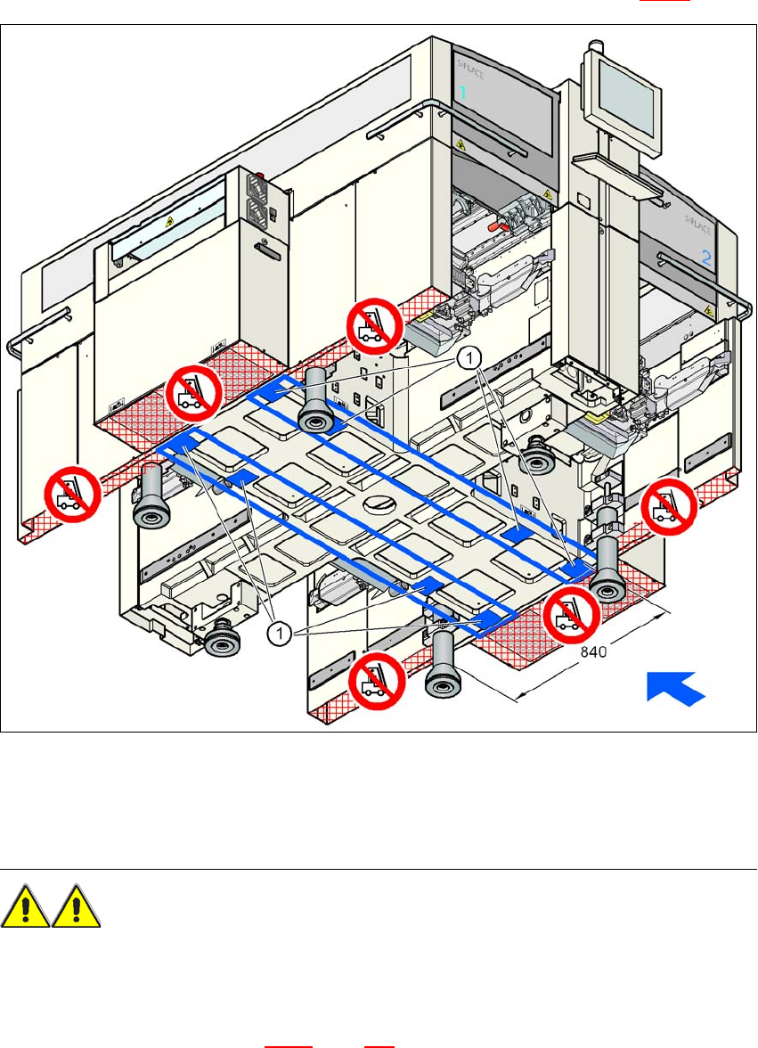 4 Setting up and commissioning User Manual SIPLACE X-Series 4.3 Setting up the placement machine From software version SR.605.xx 07/2008 EN Edition 258 increase the distan ce between the forks so that the machine is lif …