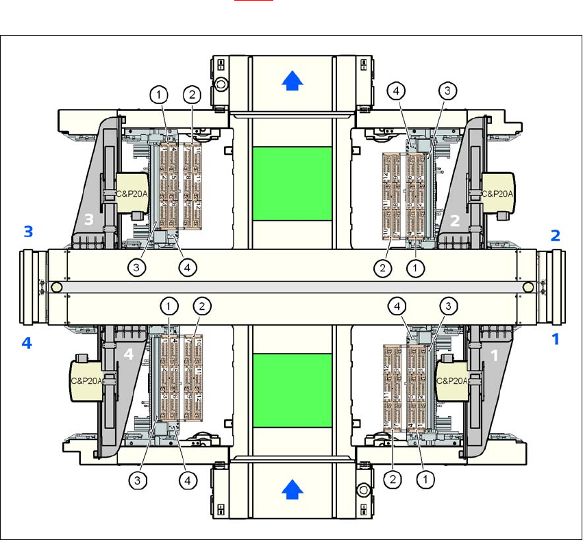 6.1.1.3 Position of the nozzle changers for the C&P20A head on the X4 machine