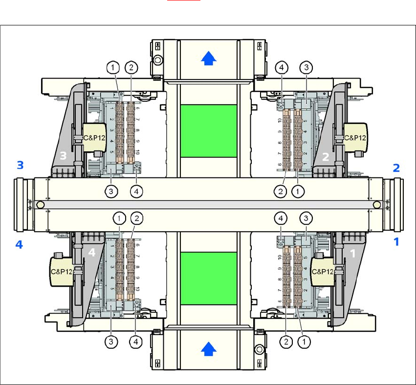 6.1.2.3 Position of the nozzle changers for the C&P12 head on the X4 machine