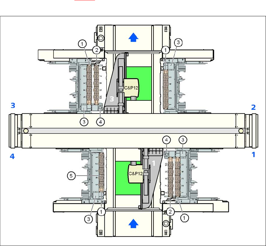 6 Station extensions User Manual SIPLACE X-Series 6.1 Nozzle changer From software version SR.605.xx 07/2008 EN Edition 382 6.1.2.5 Position of the nozzle changers for t he C&P12 head on the X2 machine 1 or 2 nozzle …