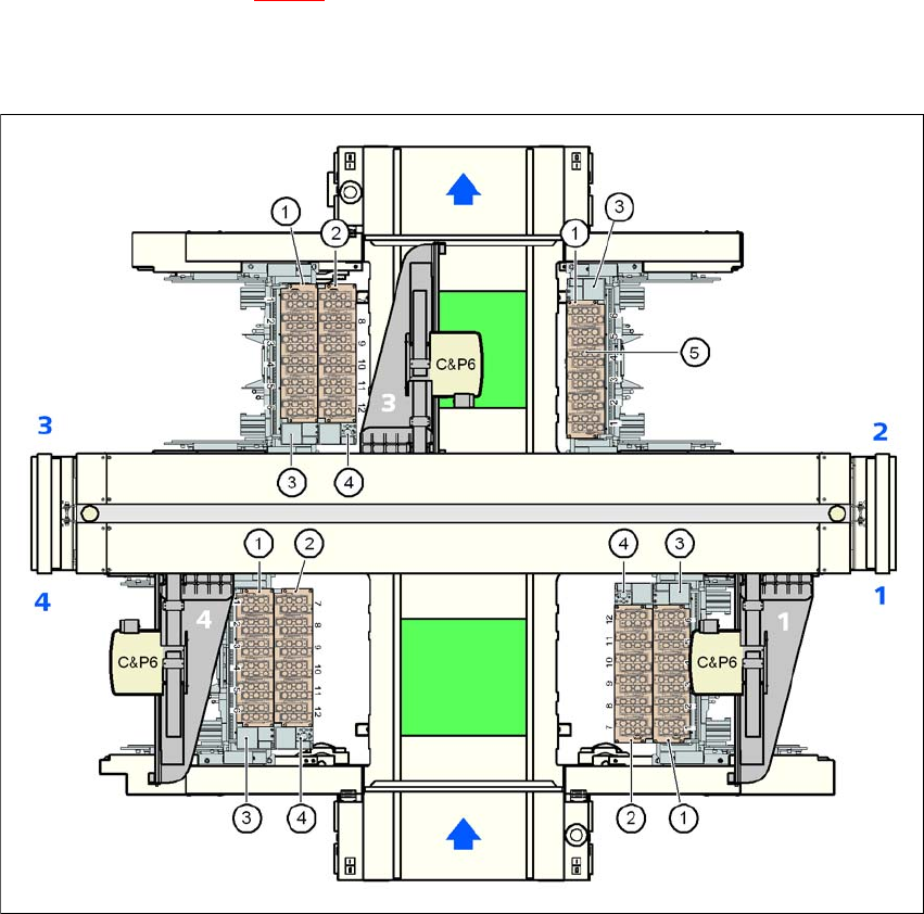 1 or 2 nozzle changers may be installed at locations 1 and 3 for the 6-segment Collect&Place head