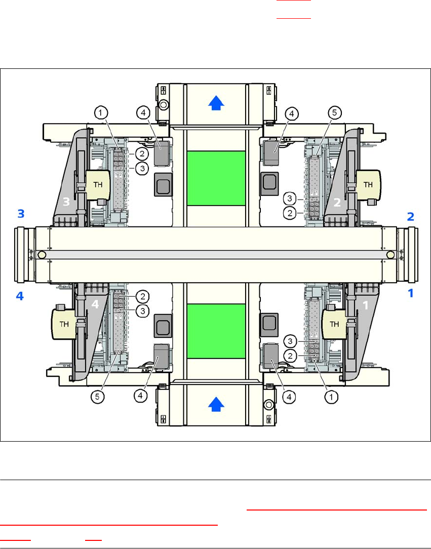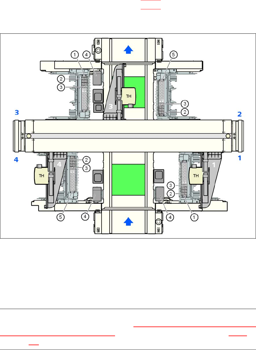 A nozzle changer may be installed for each TwinHead at locations 1 to 4.