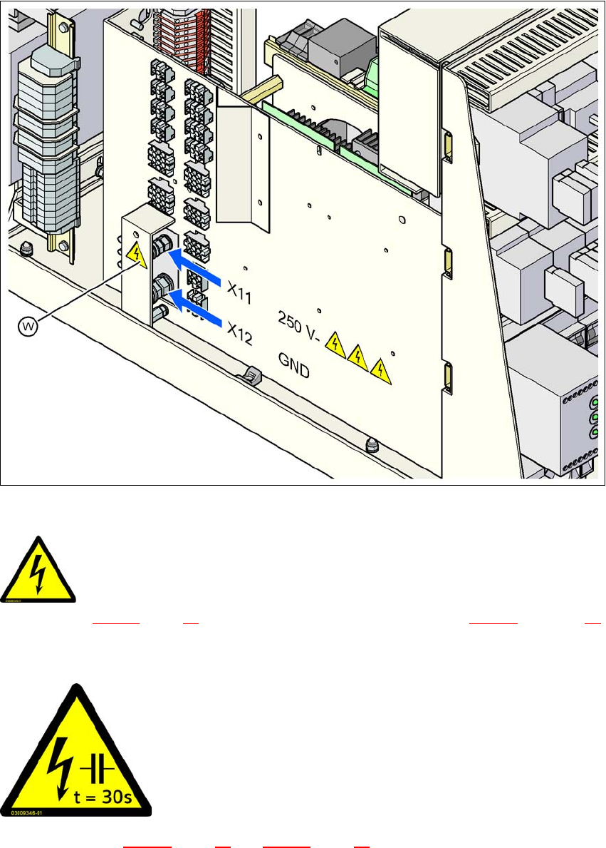 Fig. 2.2 - 11 Warning label W on the cover over the main power supply for the servo amplifier