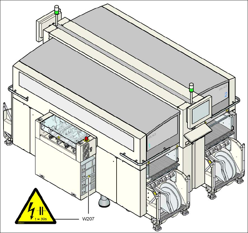 2.2.4.5 Warning label W207 on the inrush current limitation for the main power supply