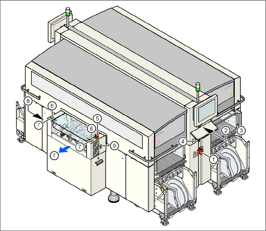 2 Operational safety User Manual SIPLACE X-Series 2.6 Safety equipment From software version SR.605.xx 07/2008 EN Edition 74 two cover flaps (item 3 and 4 ) over the input or output belt of the PCB conve yor prevent acc …