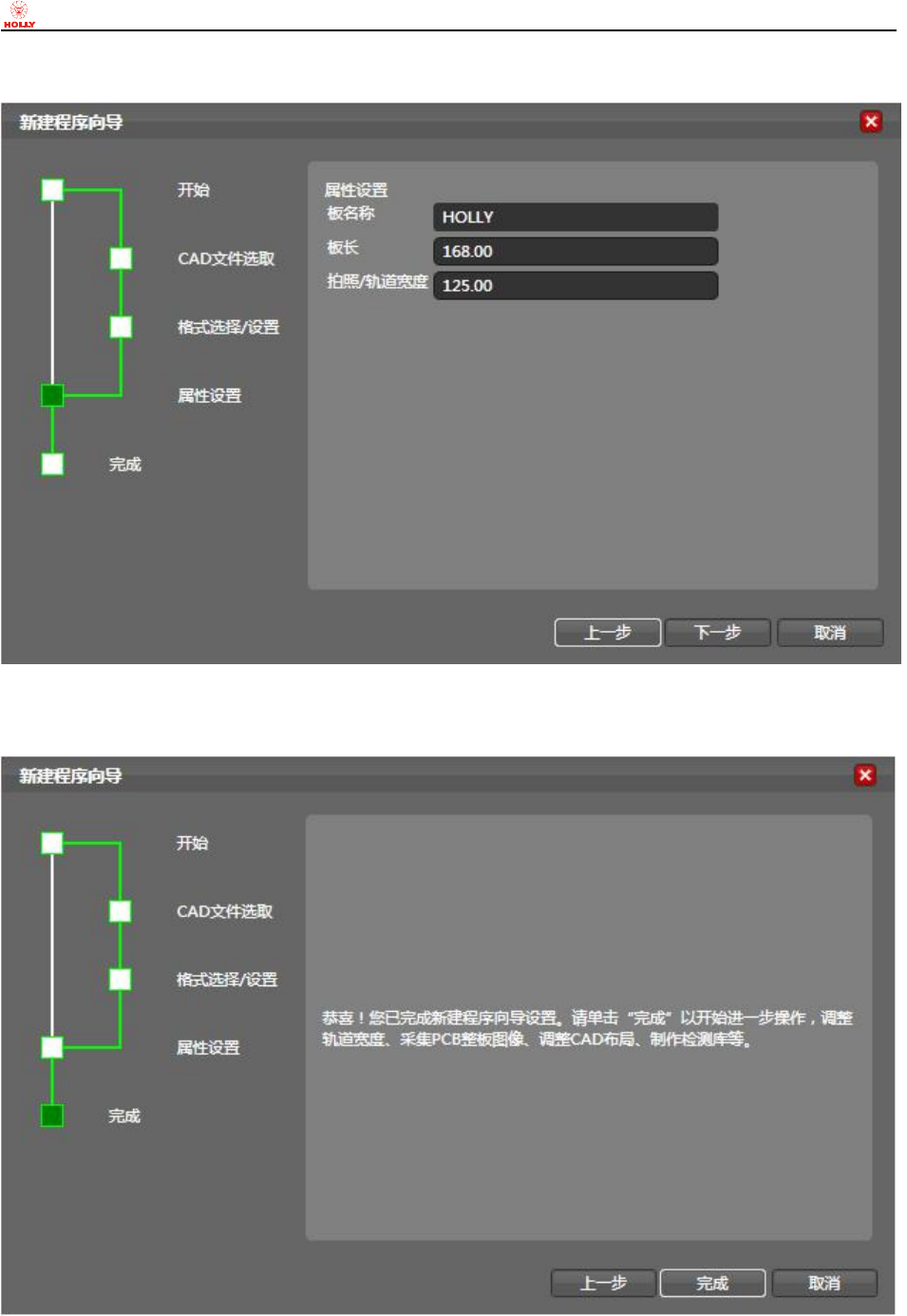 步骤 6):屏幕返回到“新建程序向导”对话框,点击“下一步”,对所测 PCB 的属性(长度、宽度及板