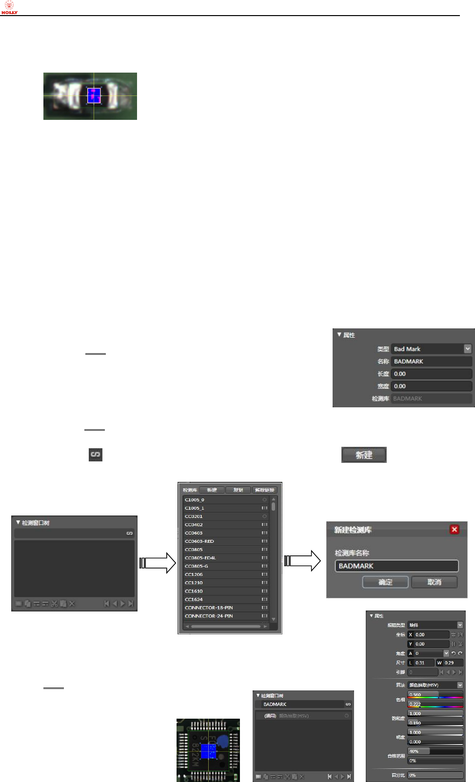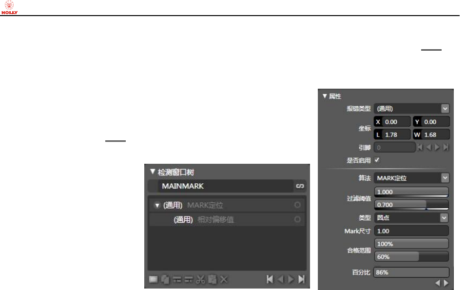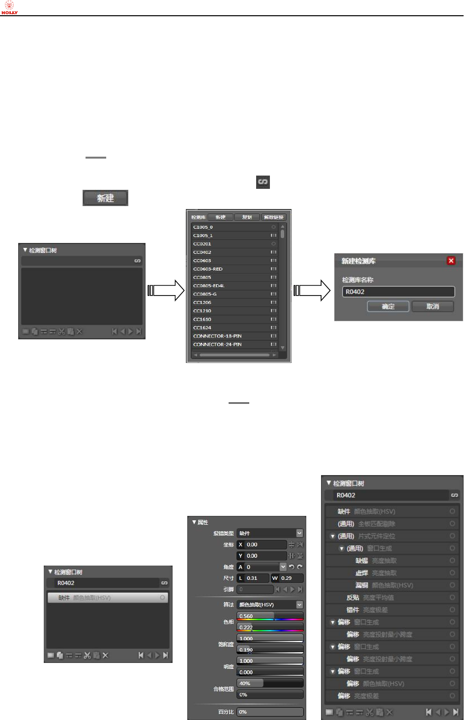 目录,“赫立 AOI 系统软件”将切换成检测库编辑界面,在“检测窗口树”板块点击右侧的“检测库新