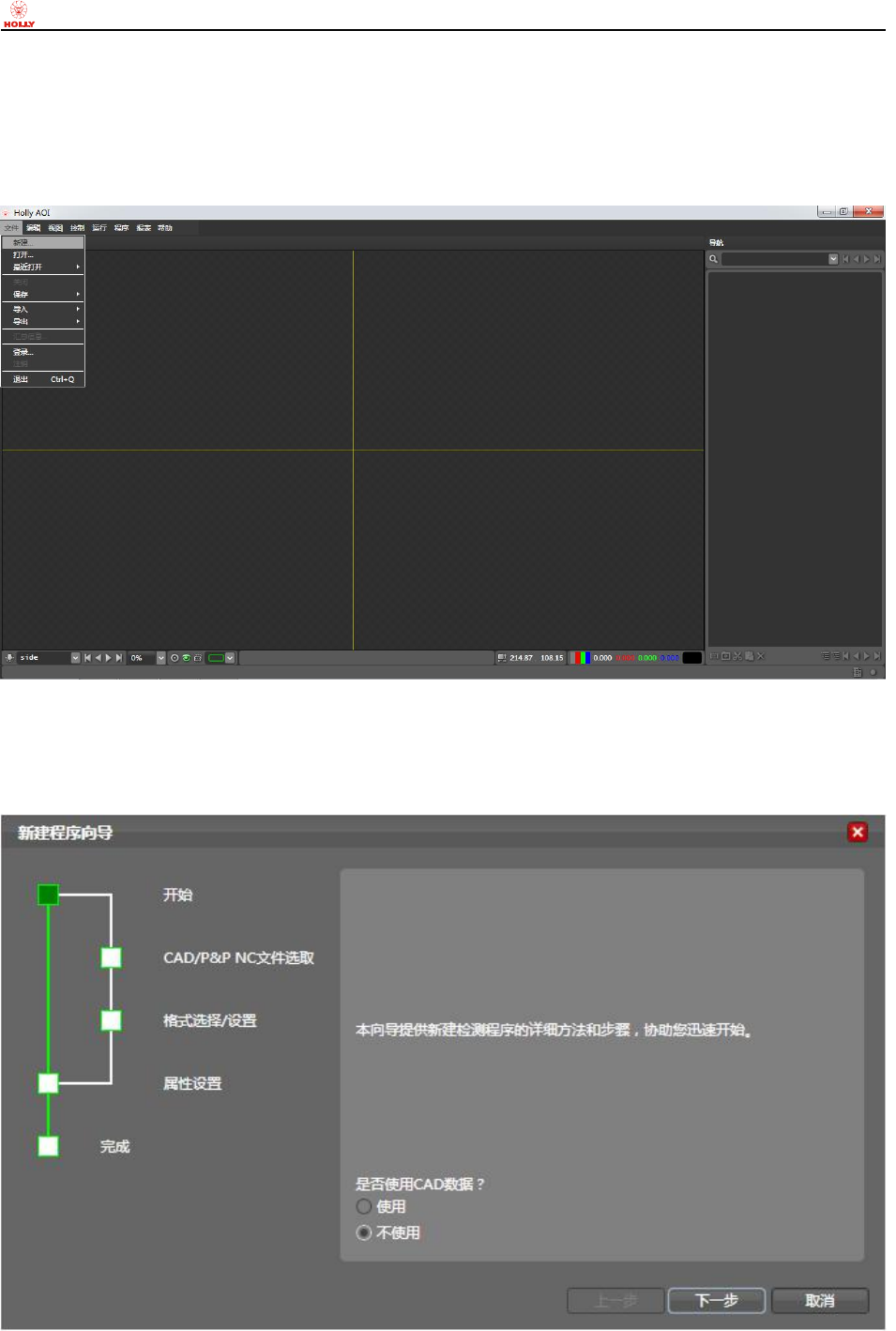 步骤 2):在弹出的“新建程序向导”对话框内,按照提示选中“不使用”CAD 数据单选按钮,点击“下