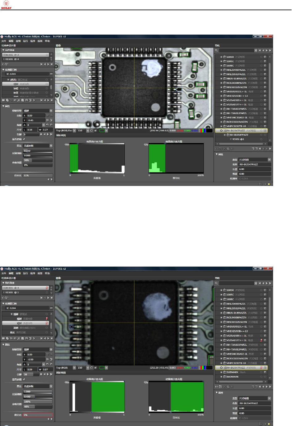 焊/空焊时,当前检测窗口亮度抽取亮度很亮的像素数占窗口内像素总数的百分比结果数值相对较大。