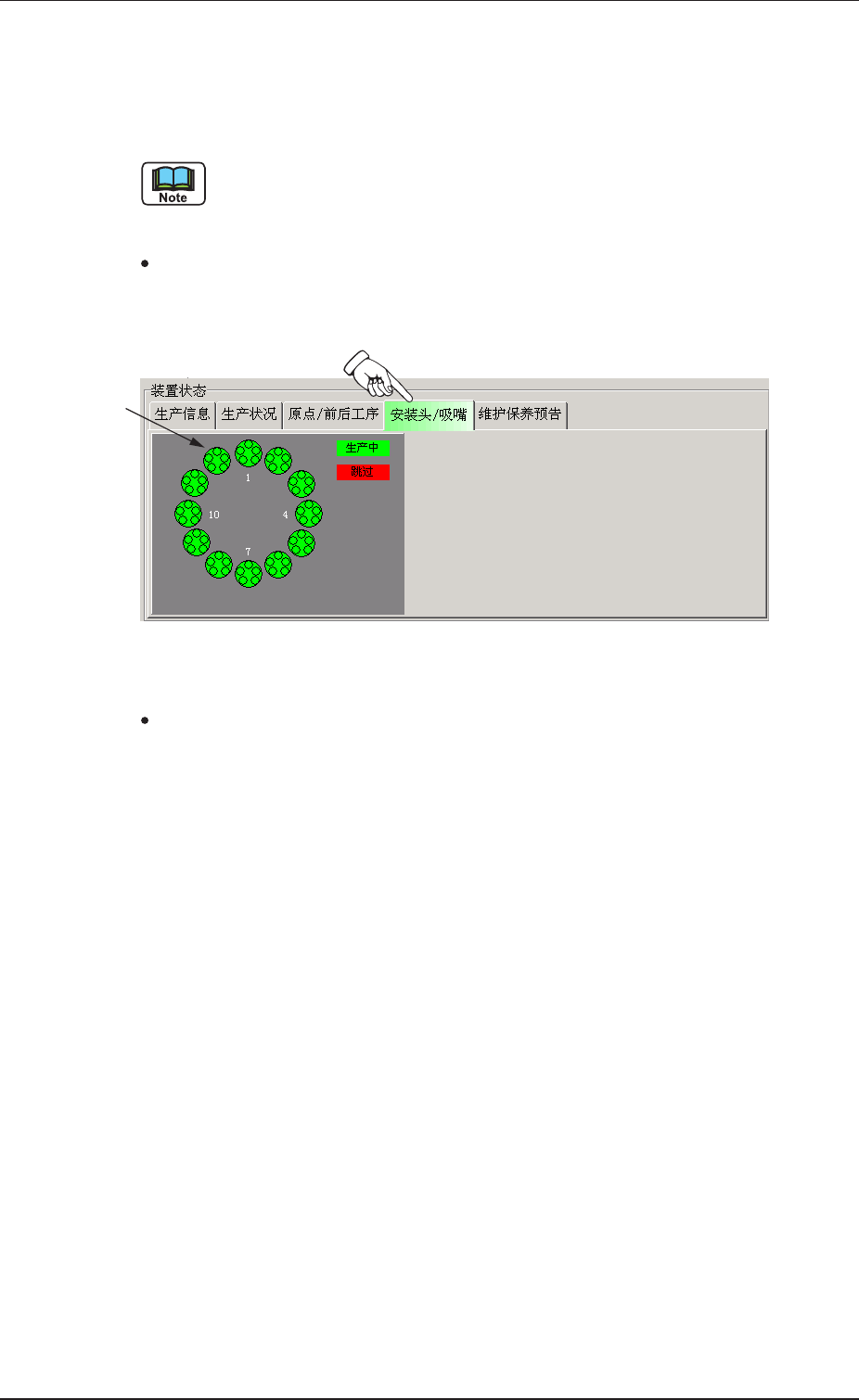显示安装头和 吸嘴的运行状况。