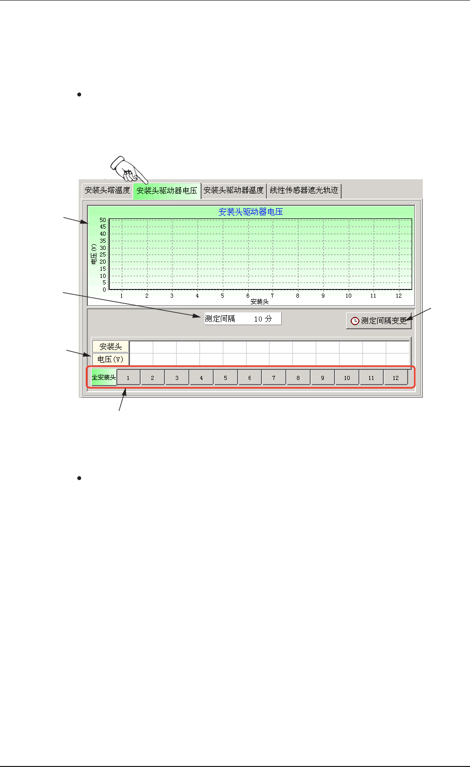 选择作为测定对象的安装头。将全体安装头作为对象时,要按