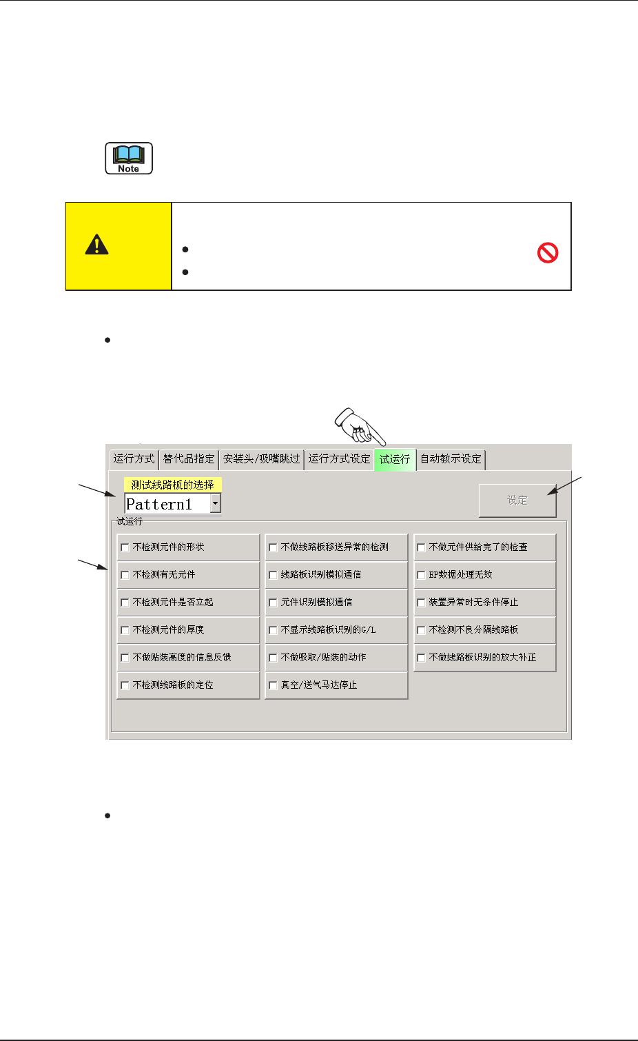 针对试运行方式的设定。