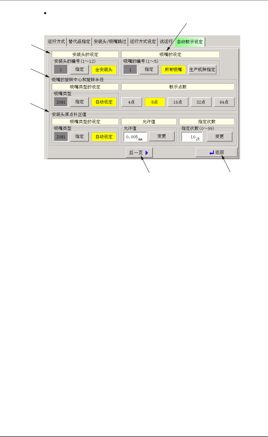 执行 “ 吸嘴的旋转中心和旋转半径补正值 ” 的自动教示中,