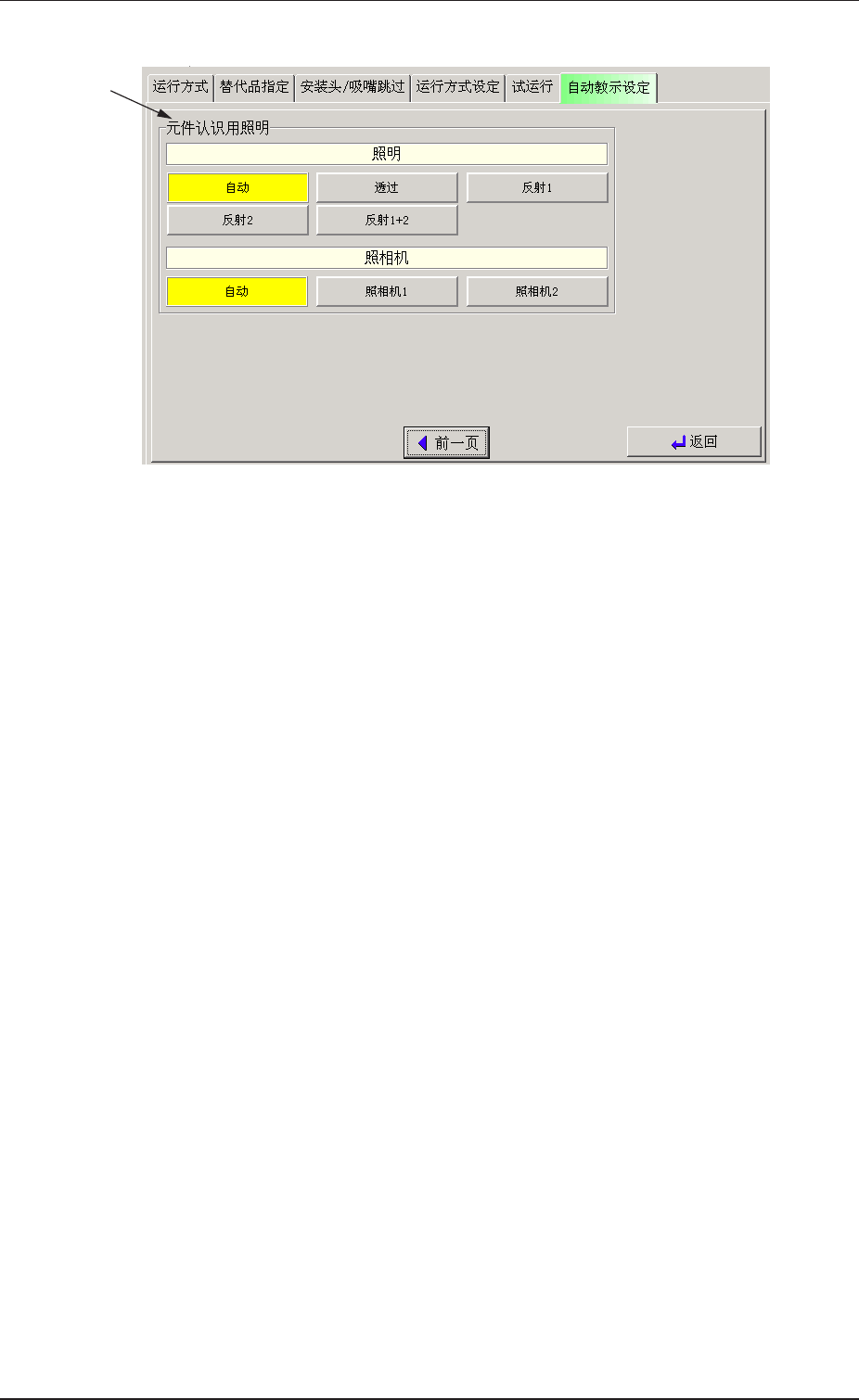 执行 “ 元件认识用照明 ” 的自动教示时,单击[ 自动] 、[ 透