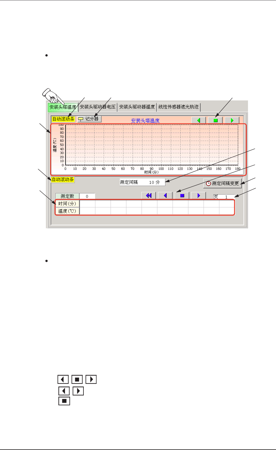 如果将自动滚动设为有效,装置将自动滚动显示温度图表。