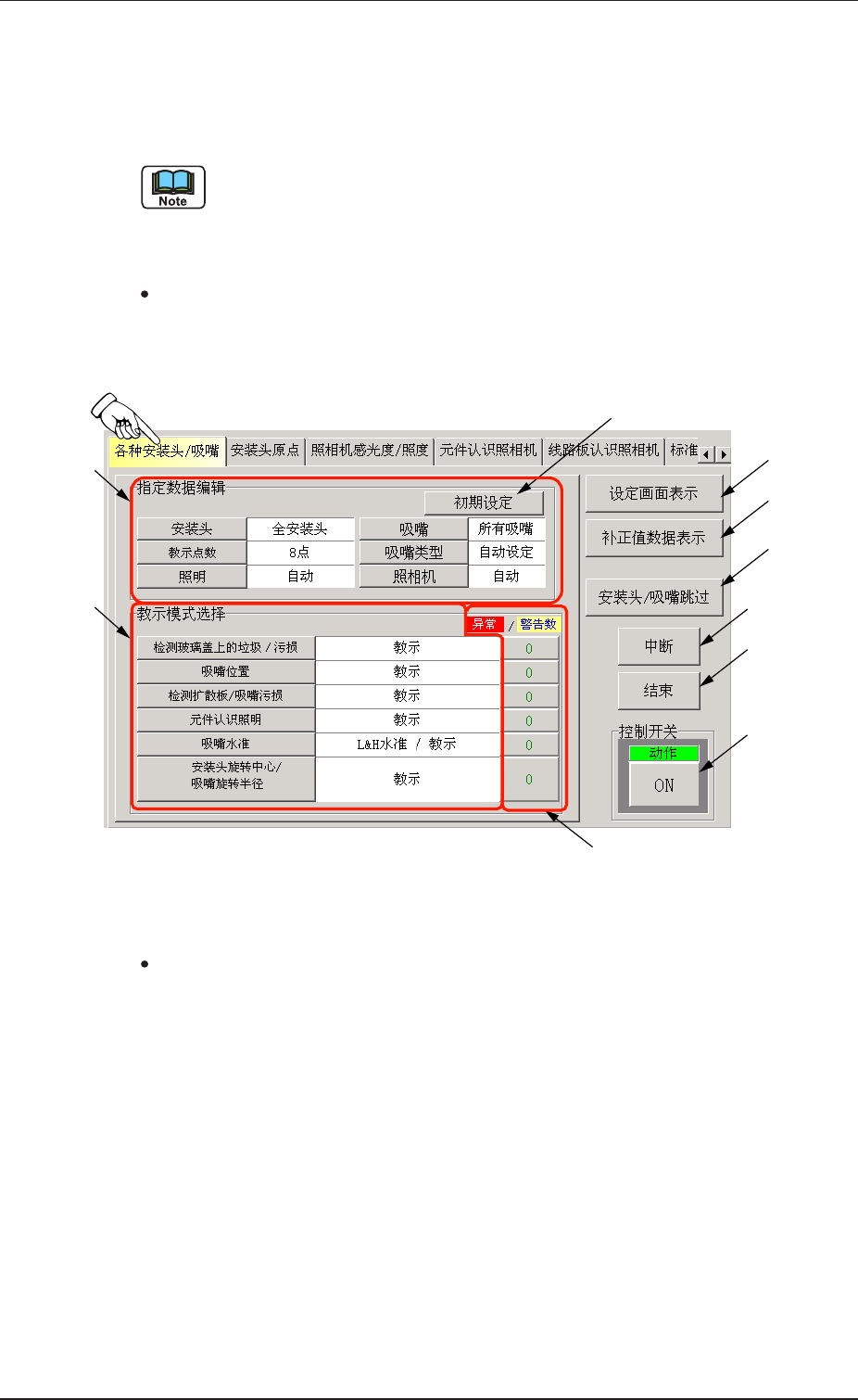 进行各种安装 头和吸嘴的教示。