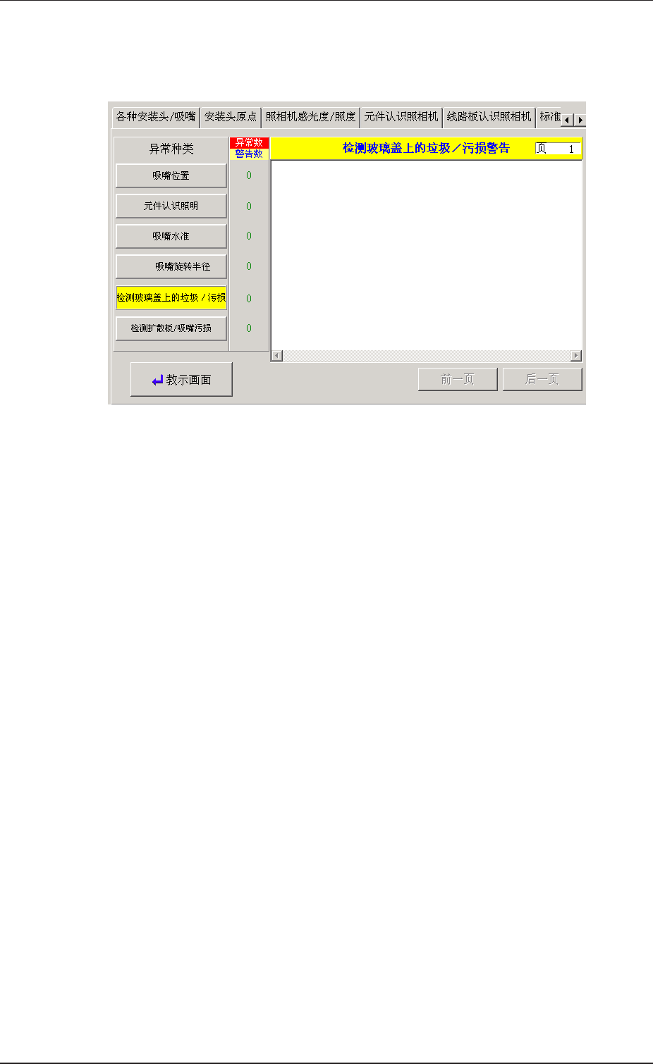 按异常种类按钮,显示对应该按钮种类的教示异常信 息。