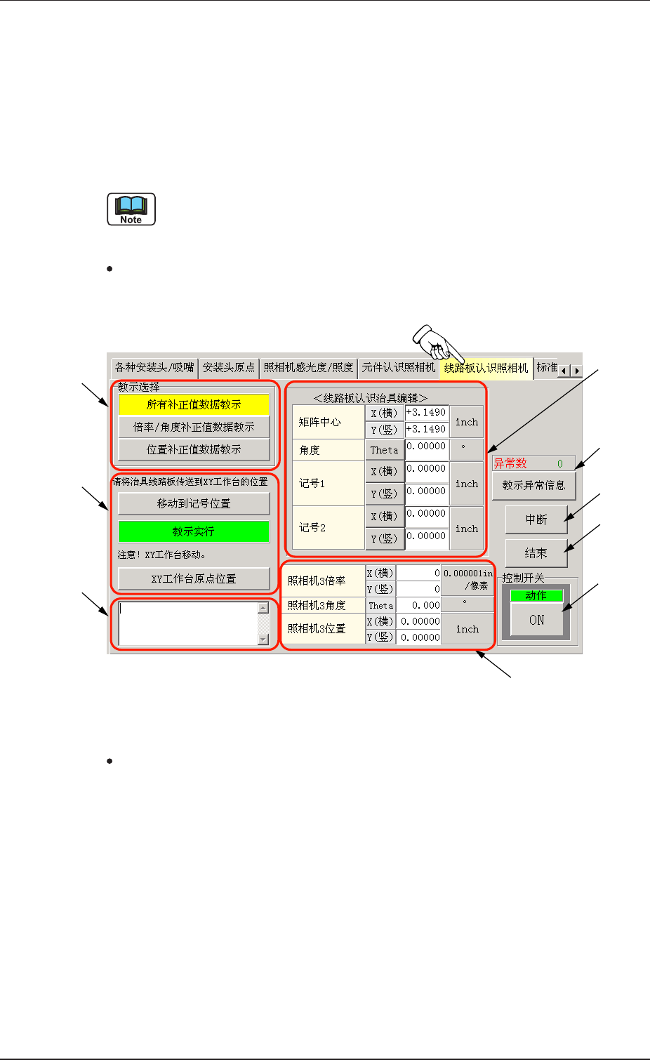 进行有关线路板认识照相机的位置补正值数据教示。