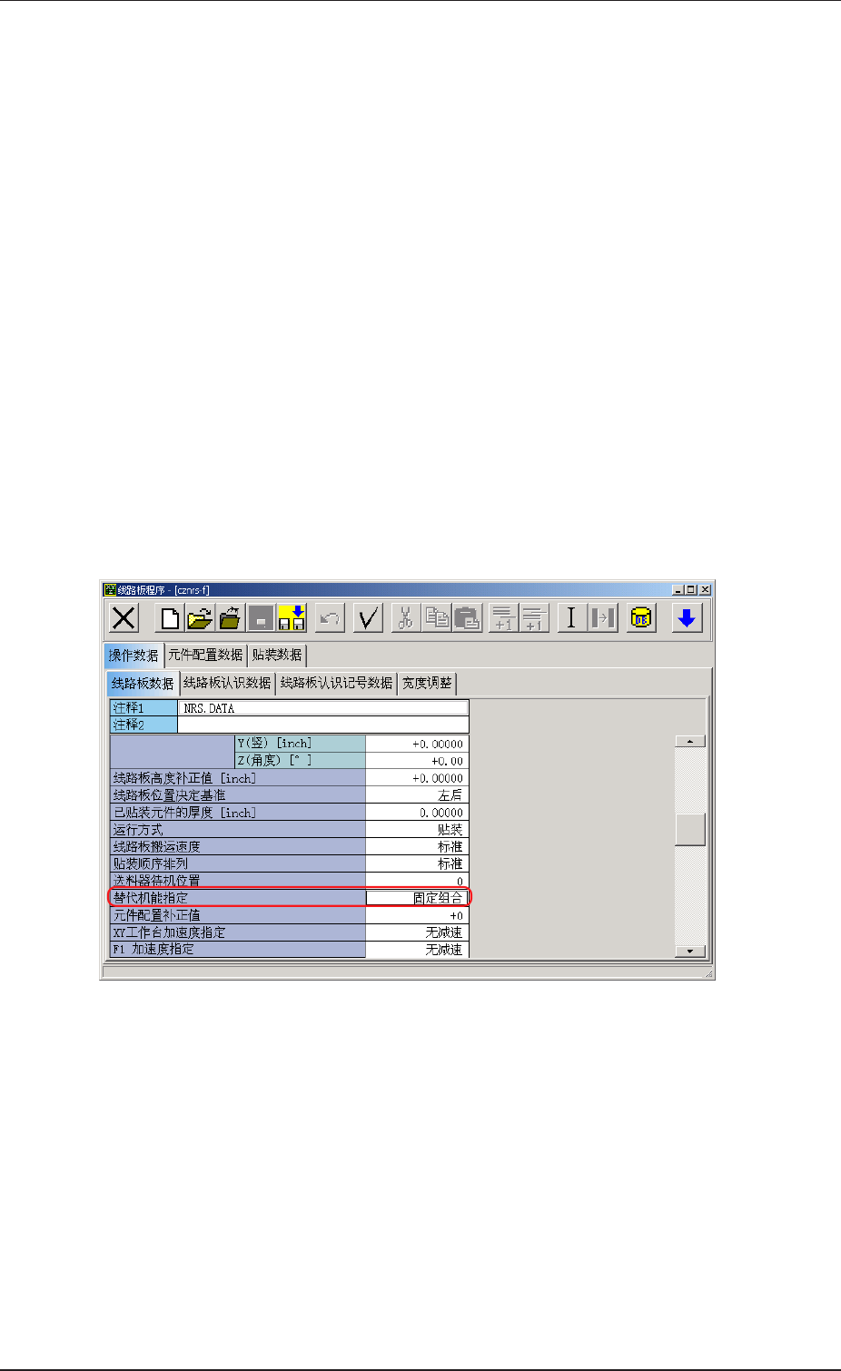 (1) 在线路板程序编辑界面的 “ 操作数据 ” 选项卡中,将 “ 替代机能