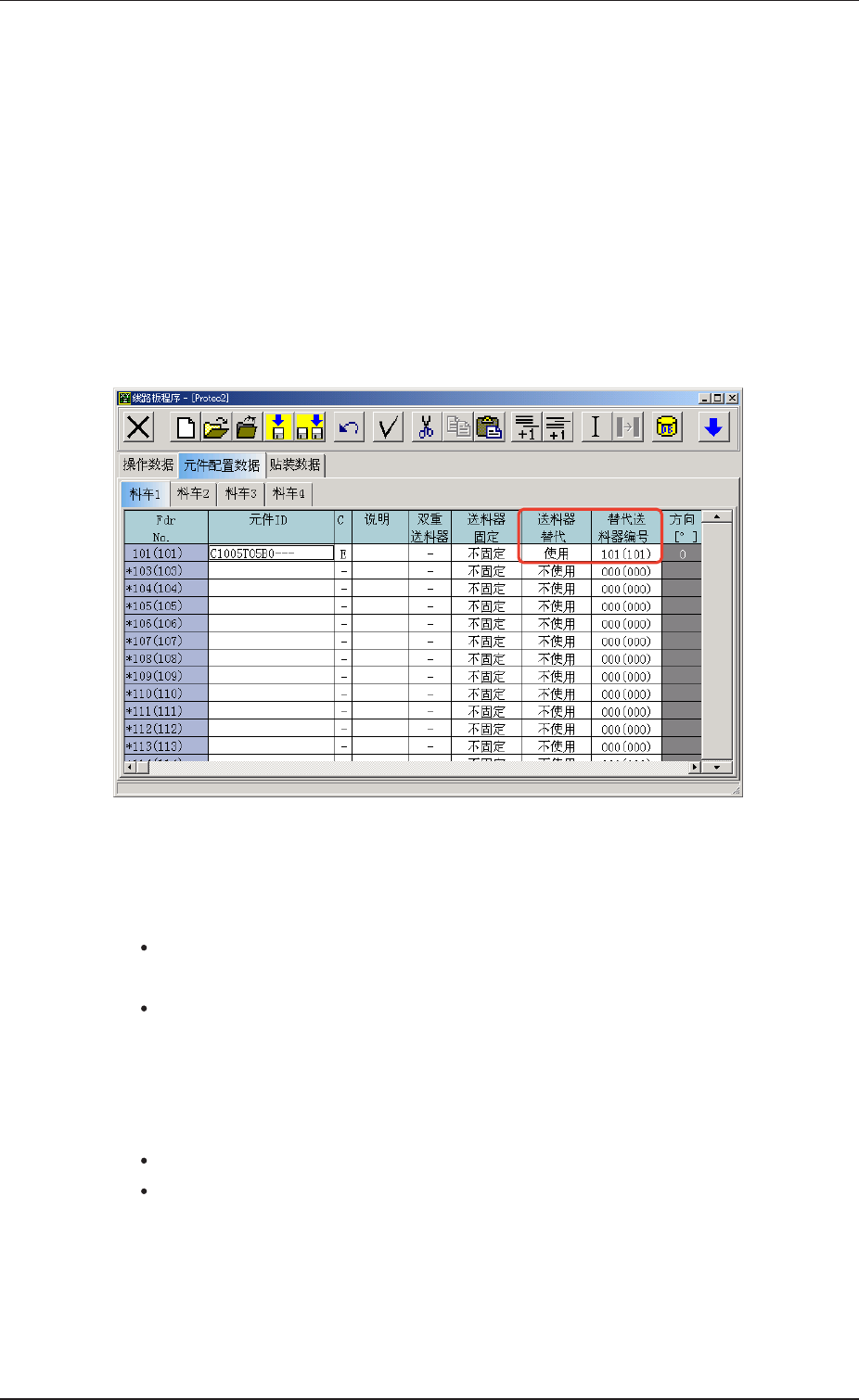替 代 送 料 器 编 号 设 定 时 的 条 件替 代 送 料 器 编 号 设 定 时 的 条 件
