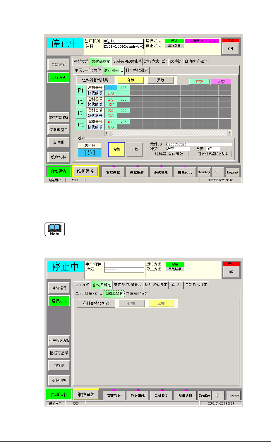 在 “ 送料器替代( 有效) ” 选项卡确认送料器替代的推移状况,以
