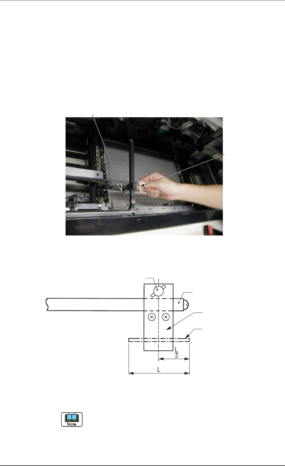 缓缓滑动送料棘爪的蝶形螺栓,对准线路板宽度的 1 / 2 ( 中央) 位置