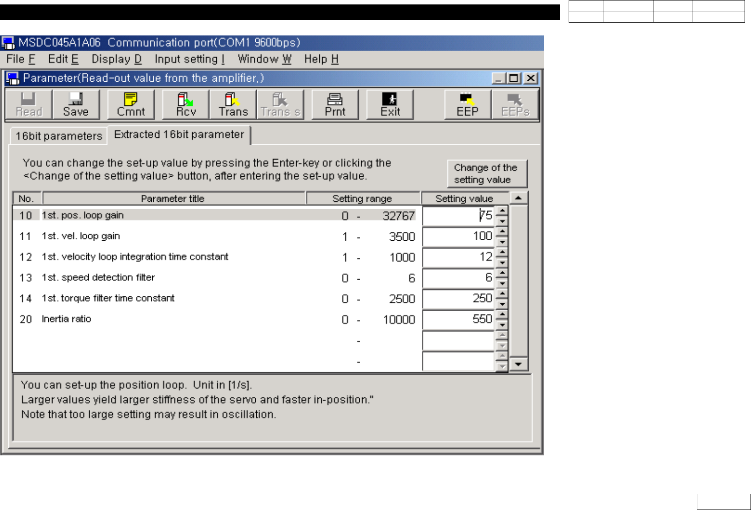 9. Motor & Driver Ver. Date CP45 CP45NEO 00 2004/11 O O 9-2 5) Select "Parameter" in Window Mode as Fig 9-2-2-4 (Be Careful not to Use other Button as it is for Expert Use) 6) Select "Read-out from the…