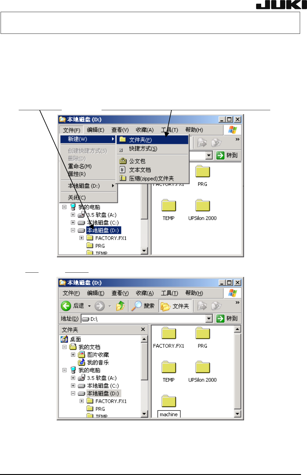 4) 于是在 D 驱动器下建立名为“machine”的文件夹。请在 machine 文件夹之下用同样方法建立
