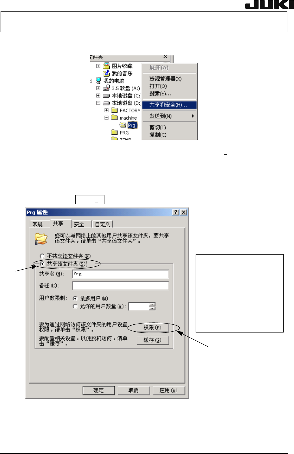 在 D 驱动器下建立一个名为“D:\machine\Prg”的文件夹,设定 Prg 为共享文件夹。