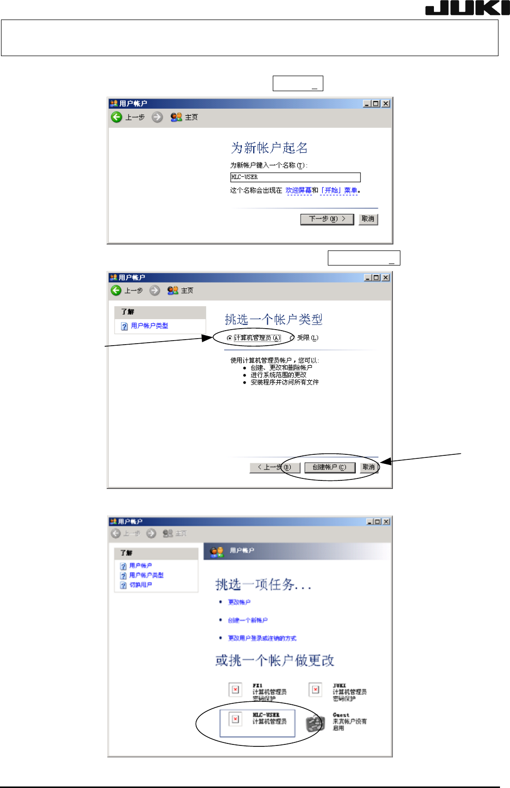 6) 请选择已建立的用户帐户。