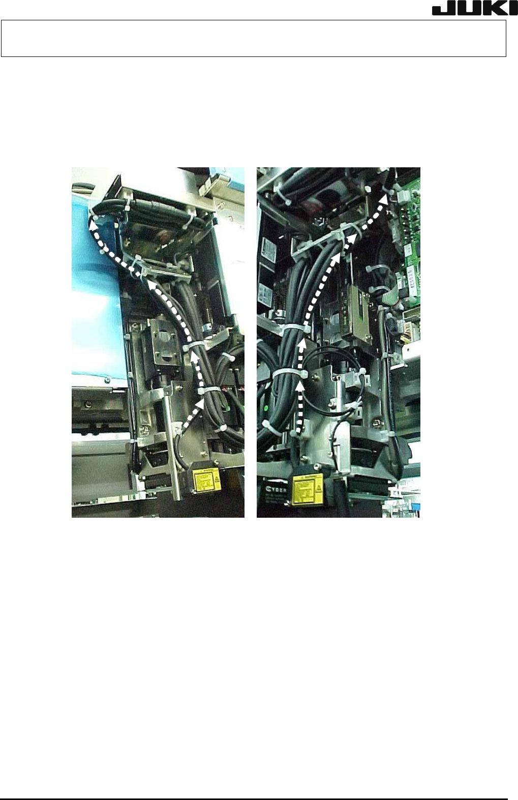 保养调整说明书 3-3-5 HMS 布线处理 来自 HMS 传感器的束线按下图所示走线。 把各部分用束线带固定。 左贴装头 右贴装头 ※ 布置各处的缆线时不要让缆线过度受力。 3-7 Rev. 2.00
